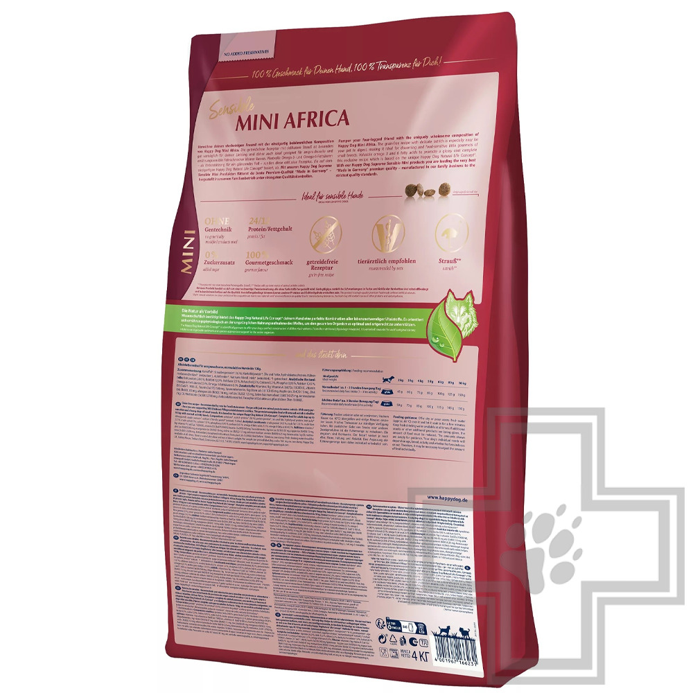 Happy Dog Sensible Mini Africa Корм для взрослых привередливых собак мелких пород, со страусом