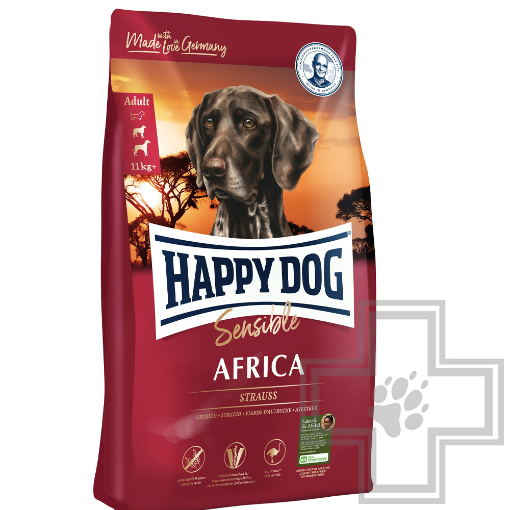 Happy Dog Sensible Africa Strauss – беззерновой полнорационный корм со страусом для взрослых собак с чувствительным пищеварением весом от 11 кг.